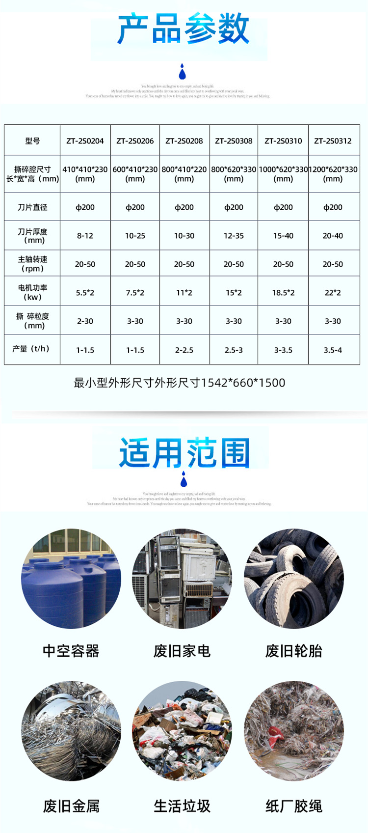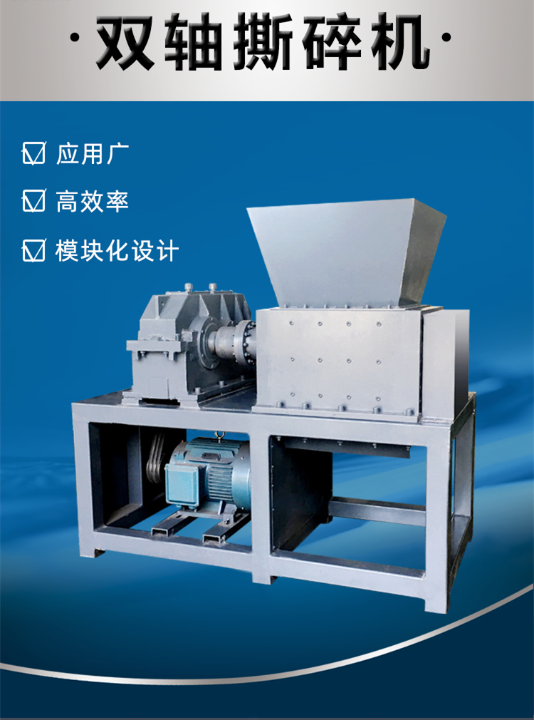 雙軸撕碎機(jī)-廣泛應(yīng)用于塑料制品、廢舊塑料、木材、廢舊輪胎、廢舊金屬、廢舊家電等相關(guān)固廢利用領(lǐng)域。整機(jī)模塊化設(shè)計,根據(jù)不同物料特性及產(chǎn)能需求,配置相應(yīng)的齒形結(jié)構(gòu)、刀體排布、刀具材質(zhì)及箱體尺寸。雙軸破碎機(jī)主要靠“剪和切"的原理來完成破碎固體廢棄物的過程。